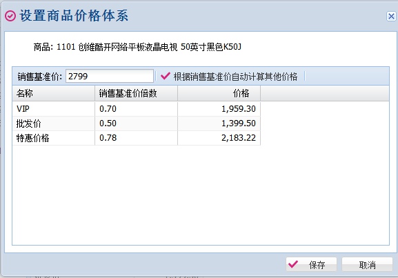 通过设置销售基准价的倍数可以在商品中通过设置基准价快速计算出各个价格。